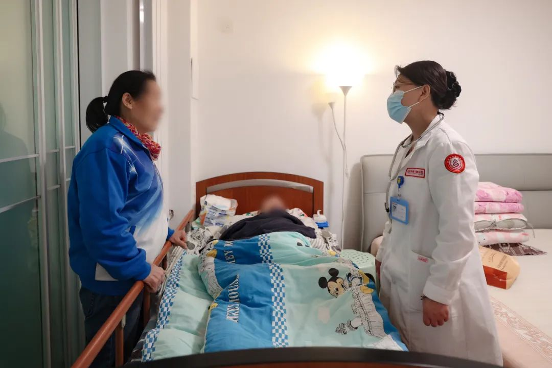 与此同时,护理人员为每位居民测量血压、血糖。养老中心主任刘晓东则重点走访失能、半失能老人家庭,根据居家环境提出防跌倒改造建议,并演示协助翻身、喂食等照护技巧。这种“医疗+养老”双轨并行的服务模式,正是该院“机构医养、两院一体”特色的生动实践。